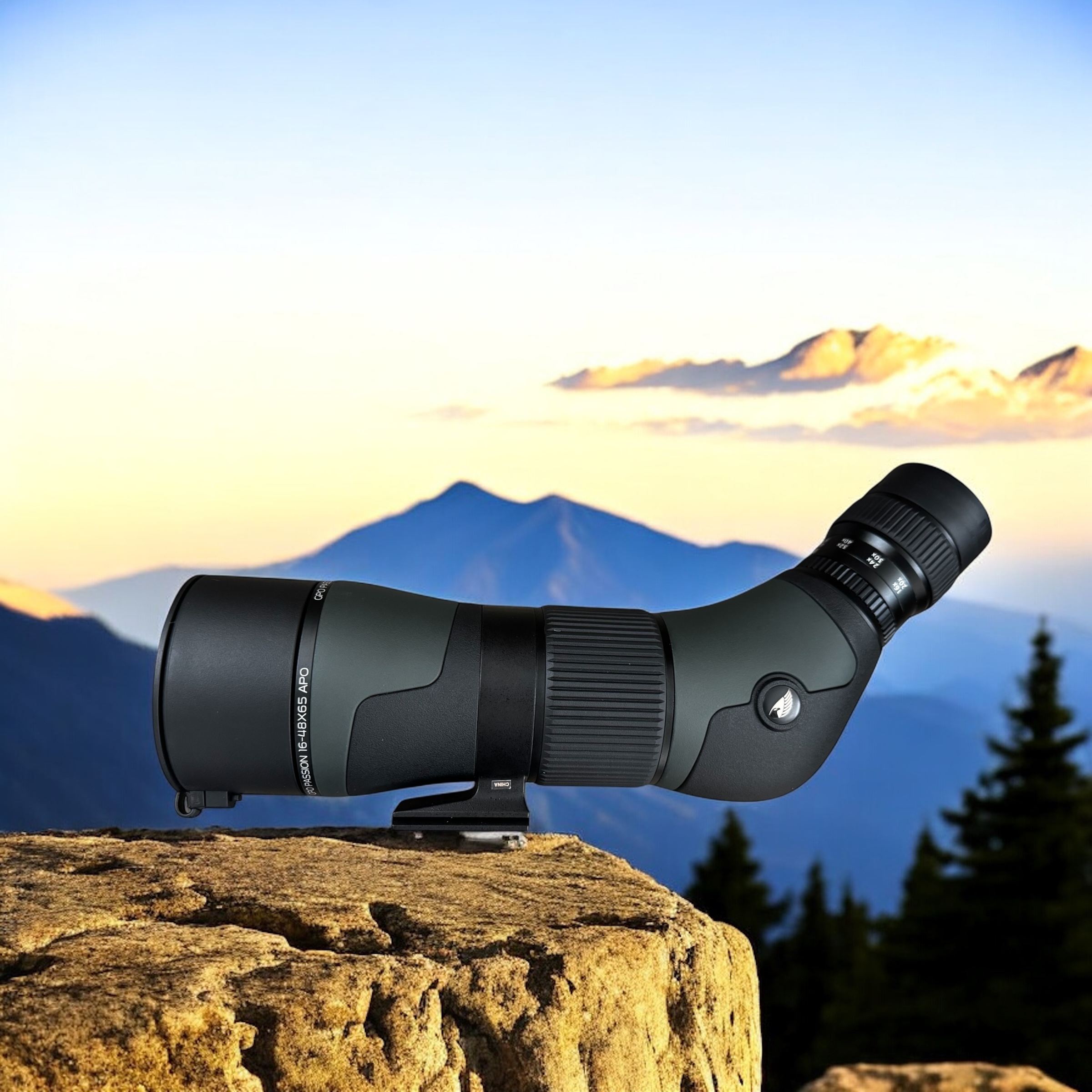 Explore the world in remarkable detail with the all-new PASSION APO 16-48x65mm spotting scope, a compact yet powerful companion to its larger counterpart, the APO 20-60x85mm. This downsized version sacrifices nothing in performance or design, delivering cutting-edge optical excellence in a more portable package. Built with a durable internal magnesium body and protective rubber armoring, it is engineered to withstand the toughest conditions. Advanced APO (apochromatic) lenses eliminate chromatic aberrations, while GPObright™ high-transmission coatings maximize light efficiency. A precision brass gear helical focus system ensures smooth and accurate adjustments. Additional highlights include a built-in sliding sunshade to reduce glare and a locking rotational base for flexible eyepiece positioning. Trust GPO for your next adventure and enjoy unparalleled visual clarity.
